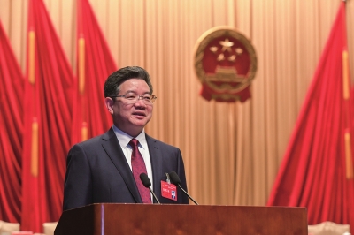區(qū)長傅貴榮作政府工作報(bào)告。