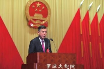 區人大常委會主任費偉華在區十一屆人大六次會議上作《區人大常委會工作報告》。