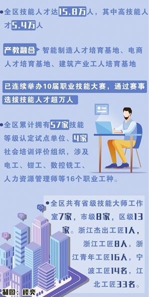 技能人才是支撐中國制造、中國創造的重要力量,對推動經濟高質量發展有著重要意義。今年來,江北區深推產教融合基地建設,以高質量打造“浙派工匠”金名片為總目標,大力實施技能根基工程,加快技能提升和“擴中提低”雙向融合,奮力推進“兩個先行”,全力打造北岸技能人才培育高地。截至目前,全區技能人才達15.8萬人,其中高技能人才5.4萬人。
