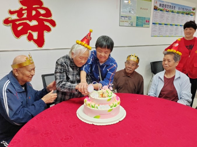 據悉,這是朱家社區居家養老(殘)服務中心與巧益工坊志愿者們共同開展的“共迎喜壽,同慶重陽”80·90集體生日會。老人和工作人員一同切蛋糕、嘮家常、體驗老年食堂的飯菜。氣氛熱烈時,更有老人即興唱起了老歌,個個喜笑顏開,現場氛圍一片溫馨祥和。
