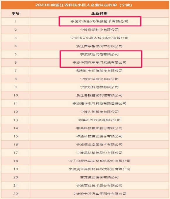 據了解,此次入選省科技小巨人企業的寧波中車時代傳感技術有限公司、寧波歐達光電有限公司、寧波華翔汽車車門系統有限公司,均為區內具有代表性的科技型企業,創新研發能力和發展后勁十足。
