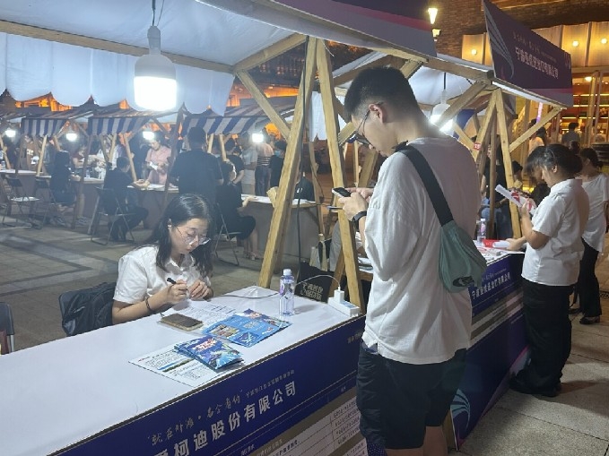 夜幕降臨,華燈初上,老外灘江邊一個個招聘攤位引人駐足。唐女士說:“本來是過來逛街的,看到招聘忍不住為閨女詢問起來。”寧波工程學院2024屆畢業生唐同學在好幾個企業攤位遞送了簡歷,他告訴記者,他的專業是油氣儲運工程,簡單點說就是設計石油化工機器的,機械類和工程類的崗位都比較對口。但由于很多人對這個專業不了解,線上找工作比較困難,這種能面對面交流且輕松有趣的形式挺不錯的!