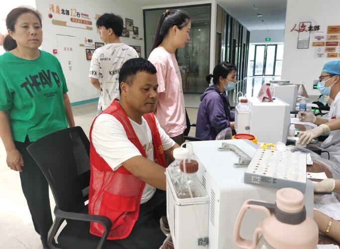 同樣熱心的倪興隆今年因為身體原因無法參與這場獻血活動,心中不免有些遺憾。身為梅堰社區“紅色集結”獻血團的成員之一,他在現場化身志愿者,幫助維持秩序、掃碼登記等工作。倪興隆告訴記者,自己已經參與無償獻血活動10年,累計獻血3900毫升,而今年無法參與獻血不免有些遺憾?!暗俏疫€是希望能盡自己的一份力參與到無償獻血中來,也希望能有更多的人加入無償獻血的隊伍?!蹦吲d隆說。