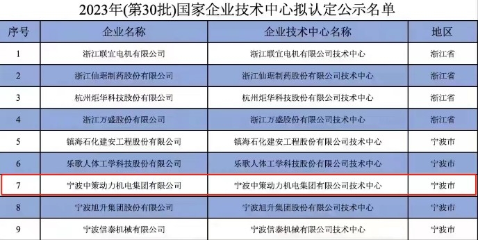 今天,記者從區發改局獲悉,在國家發展改革委日前發布的2023年(第30批)國家企業技術中心認定名單中,區新興產業服務中心企業寧波中策動力機電集團有限公司的技術中心入選,系此次僅入選9家企業的其中之一。這也是繼柯力傳感之后,該中心第二家被認定為國家企業技術中心的企業。截至目前,我區已經有4家國家企業技術中心。
