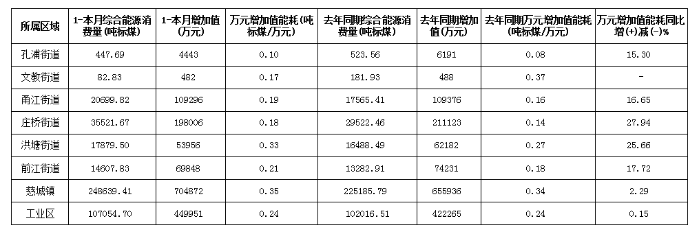 2024年1-9月江北區各街道、鎮及工業區規上工業萬元增加值能耗變動一覽表