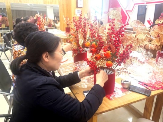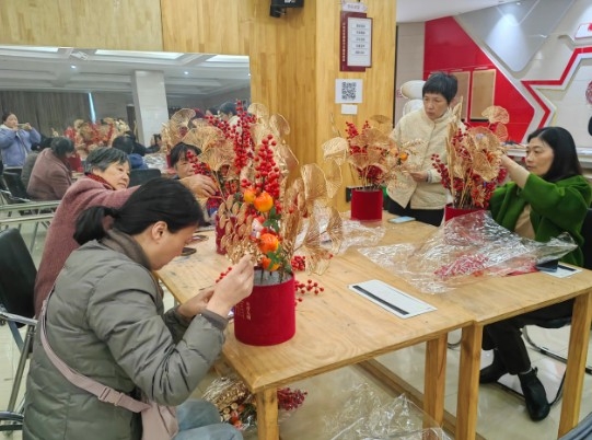 天水社區邀請居民朋友開展了“‘花’式新年,‘福’氣滿‘格’”為主題的年宵花福桶diy活動。