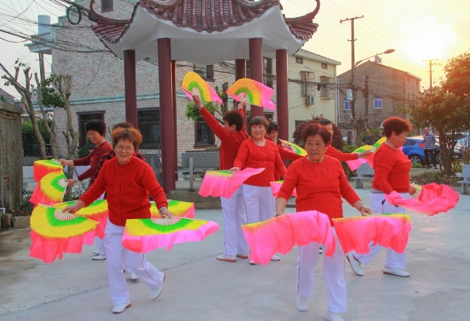| 4月20日下午,隨著富有節(jié)奏感的舞蹈音樂(lè)響起,莊橋街道孔家村老年舞蹈隊(duì)的阿姨們?cè)诖謇镆惶帊湫碌慕∩韴@內(nèi),開(kāi)始了健身舞的日常排練。