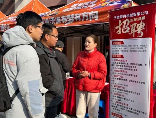 寧波銀舟機械有限公司專業生產吹塑機械、模具和自動化生產線設備,近年來效益不錯,去年的訂單還壓了許多沒做,因此節后用工緊缺。招聘負責人姚惠紅告訴記者:“招聘會剛開始不久,我就和兩個經驗豐富的鉗工師傅達成了初步合作意向。”