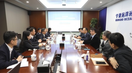 許會祥一行先行來到寧波遠洋運輸股份有限公司,在聽取公司去年生產經營情況、發展亮點及今年工作思路后,對企業經營發展所取得的成績表示肯定。許會祥指出,遠洋運輸作為江北區服務業龍頭企業,多年來為區域經濟社會發展作出積極貢獻,后續,希望企業深入貫徹落實浙江省世界一流強港建設、航運服務業高質量發展要求,踐行綠色低碳理念,以科技賦能提升船隊運力,以國內國際雙循環發展模式應對市場變化,實現企業穩健發展。同時,持續發揮企業在行業領域內的標桿性支撐作用,推動區域港航服務業加速發展,激發區域經濟發展活力。