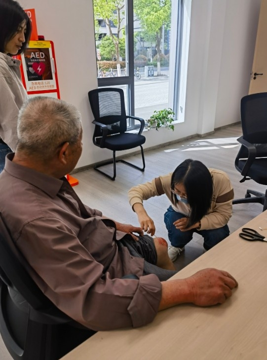 了解到這一情況后,小唐沒有絲毫猶豫,立即攙扶老人回到社區服務中心。在社區醫務室,她迅速找來了消毒用品和干凈的紗布,小心翼翼地為老人的傷口進行消毒處理。小唐手法熟練,態度溫柔,讓老人緊張的心情逐漸放松下來??紤]到老人行動不便,小唐還將備用的包扎包送給了老人,叮囑他按時更換,注意傷口清潔。