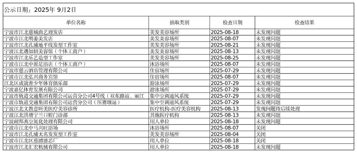 江北區衛生健康局2025年度第三批國家雙隨機檢查結果公示