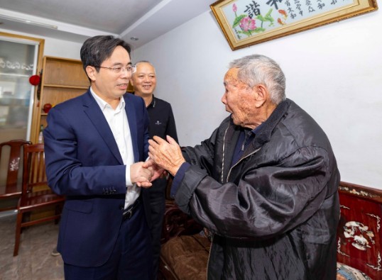 歲歲重陽日,暖暖孝親意。10月29日,正值傳統重陽佳節,區委書記張國鋒帶隊走進慈城鎮,先后看望慰問百歲老人鄭荷英、岳友林,為他們送上節日祝福與誠摯關懷,并向全區老年群體致以“健康長壽、頤養天年”的美好祝愿。區領導占瑋、劉燕一同參加慰問。