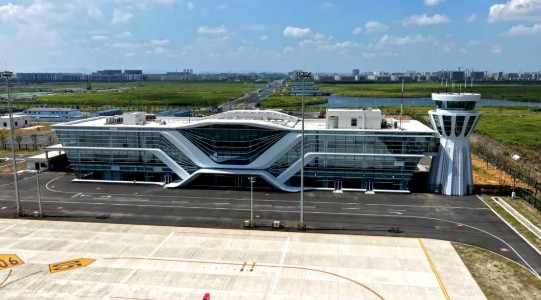 寧波前灣機場為區域性A1類通用機場,配套建設一個飛行服務站,項目概算總投資為7.39億元,占地面積約718.6畝,飛行區指標為2B。
