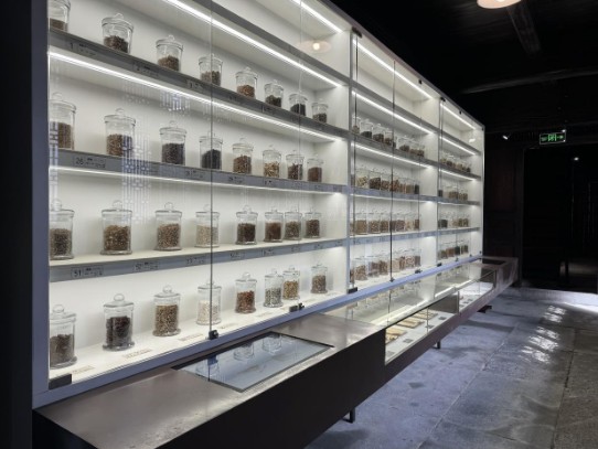 作為以“國藥商幫”為主題的博物館,在展陳設計上,博物館以“敬仰先賢”為核心,構建了層次清晰的展陳體系。整個展覽分為“藥商溯源”“巨匠傳奇”“國藥技藝”“文化傳承”四個單元,并依循建筑空間進行布局:一樓作為基本陳列區,通過復原了傳統藥鋪、中醫診室等場景,結合圖文、展品與影像,生動再現慈城藥商的歷史變遷,重點呈現北京同仁堂、廣州敬修堂等老字號與慈城的深厚淵源,展現馮根生、魏長春等國藥名家的生平與精神;二樓則設有互動體驗區與研討空間,使觀眾能更深入地沉浸感受藥商文化的魅力。