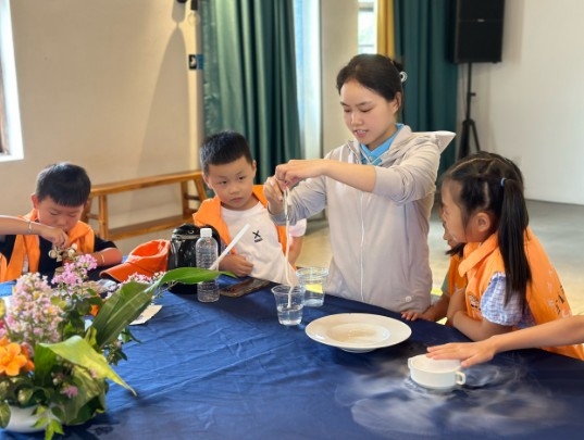 鄉(xiāng)村研學(xué)導(dǎo)師正在給孩子上課