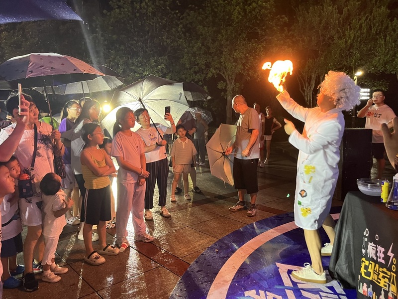 活動(dòng)現(xiàn)場(chǎng),舞臺(tái)區(qū)成為科學(xué)與藝術(shù)交匯的焦點(diǎn)??諝鈩?dòng)力實(shí)驗(yàn)秀通過(guò)干冰云霧、空氣炮推進(jìn)和氣球懸浮等互動(dòng)項(xiàng)目,生動(dòng)揭示空氣流速與力的關(guān)系,為市民理解無(wú)人機(jī)飛行原理搭建了直觀的認(rèn)知橋梁。夜幕中,多架無(wú)人機(jī)協(xié)同起舞,以天幕為屏,精準(zhǔn)變幻出低空經(jīng)濟(jì)產(chǎn)業(yè)鏈圖譜與無(wú)人機(jī)造型,呈現(xiàn)出一場(chǎng)視覺(jué)盛宴。科普有獎(jiǎng)競(jìng)答環(huán)節(jié)聚焦無(wú)人機(jī)應(yīng)用、低空交通規(guī)則和低空行業(yè)關(guān)聯(lián)等實(shí)用知識(shí),吸引眾多市民踴躍參與,老幼同臺(tái)、爭(zhēng)相舉手,在輕松氛圍中實(shí)現(xiàn)科學(xué)知識(shí)的自然滲透。